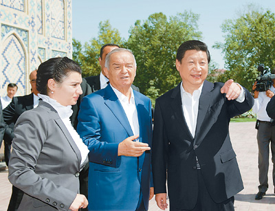 Accompanied by Uzbek President Islam Karimov, President Xi Jinping visited the ancient Ulugh Beg Observatory located in Uzbekistan's second largest city of Samarkand.