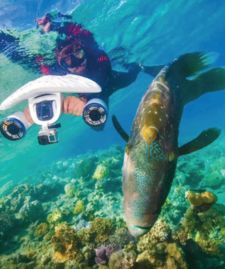 A diver uses an underwater scooter developed by underwater robot producer Sublue. [Photo/Courtesy of Sublue]