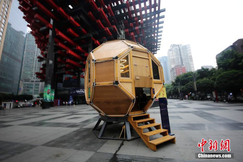 A reading room, free for public use, resembles a space capsule on a street in downtown Chongqing on May 27, 2019. More than 50 books are on display in the reading space, which is large enough to accommodate 10 people at one time. [Photo: Chinanews.com]