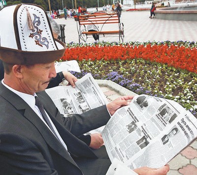 Local people read Chinese President Xi Jinping’s signed article published on the Slovo Kyrgyzstana newspaper, June 12. Photo by Han Bingchen, People’s Daily