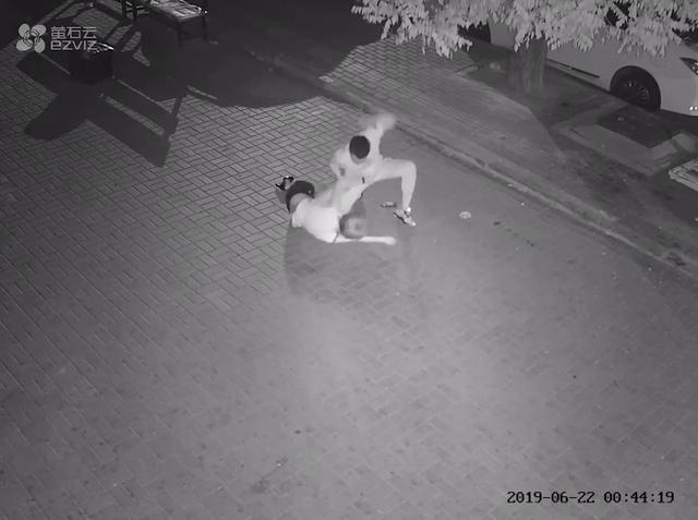 A screenshot of a video showing a man assaulting a woman on a street at around 00:44 a.m. on Saturday, June 22, 2019. [Screenshot: Sina Weibo]