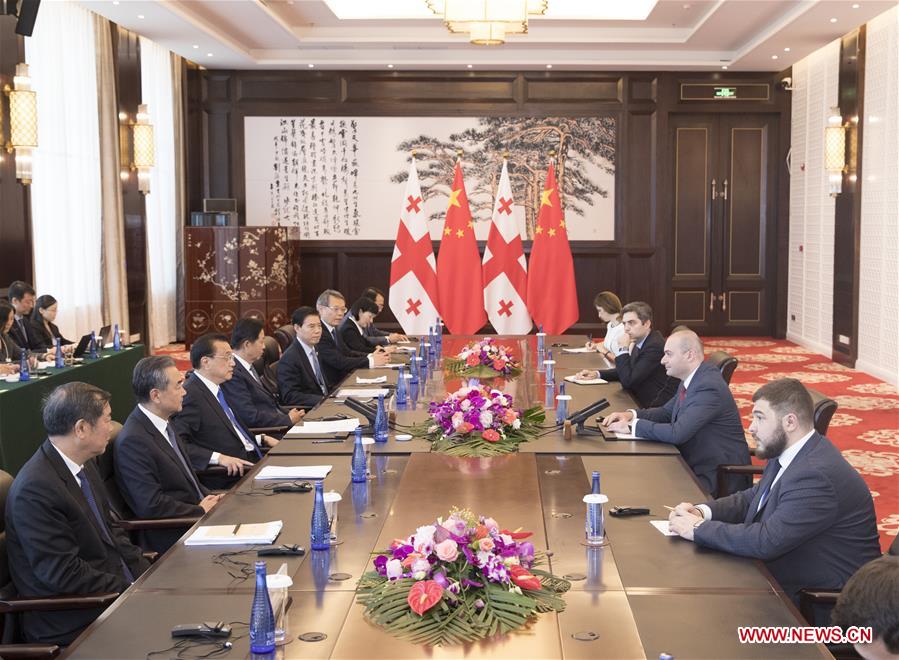 Chinese Premier Li Keqiang meets with Georgian Prime Minister Mamuka Bakhtadze in Dalian, northeast China's Liaoning Province, July 1, 2019. (Xinhua/Wang Ye)