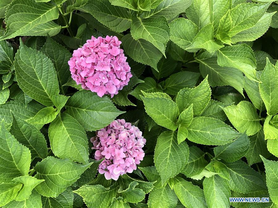 Photo taken with a mobile phone shows hydrangea flowers in Fangshan District in Beijing, capital of China, July 15, 2019. (Xinhua/Zhu Weixi)