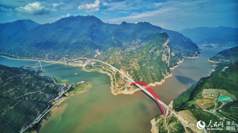 The final T-shaped part of the south approach bridge of Yangtze River Bridge in Zigui, central China’s Hubei Province was hoisted and installed on July 20, marking the completion of the world's largest span steel box truss thrust arch.