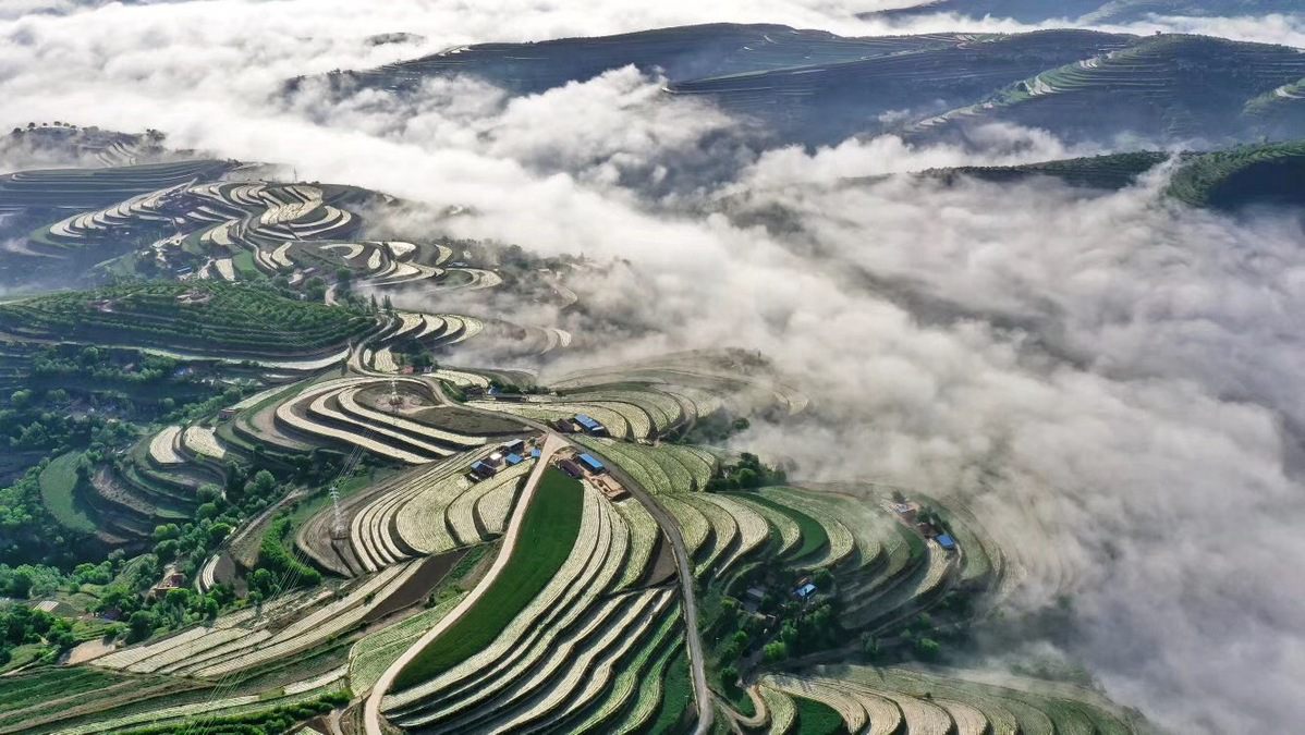 The dry land terraced fields on the mountains in Guyuan, Ningxia Hui autonomous region, have been transformed into rich colors of trees, grass and flowers. (Photo provided for chinadaily.com.cn)