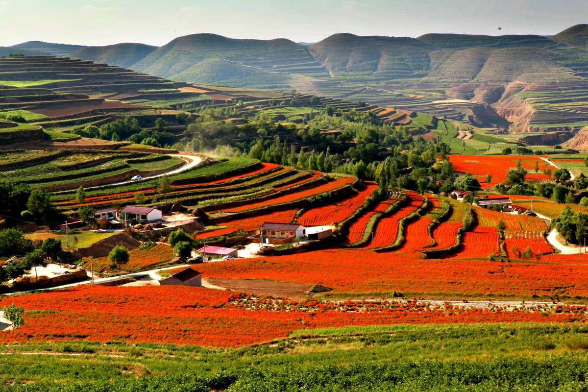 The dry land terraced fields on the mountains in Guyuan, Ningxia Hui autonomous region, have been transformed into rich colors of trees, grass and flowers. (Photo provided for chinadaily.com.cn)