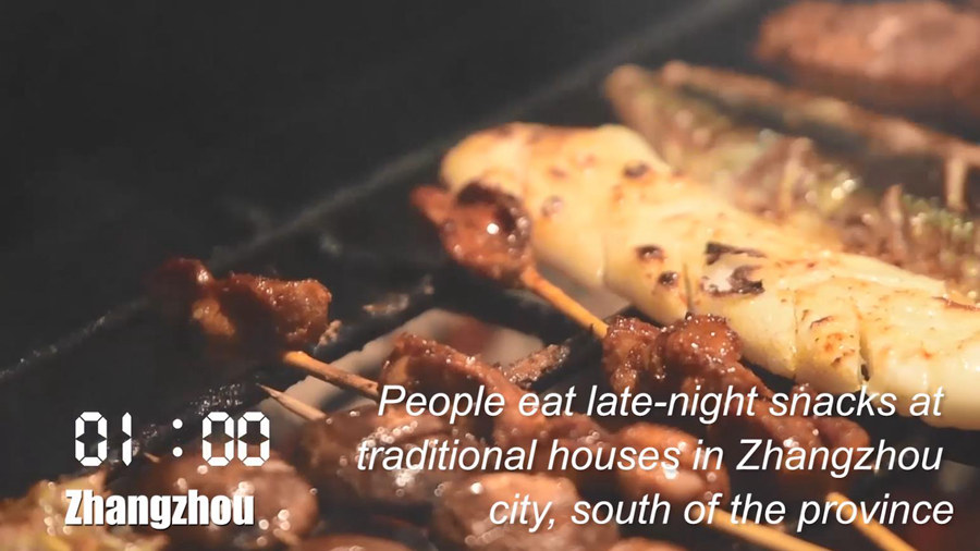 People eat late-night snacks at traditional houses in Zhangzhou city, south of the province.