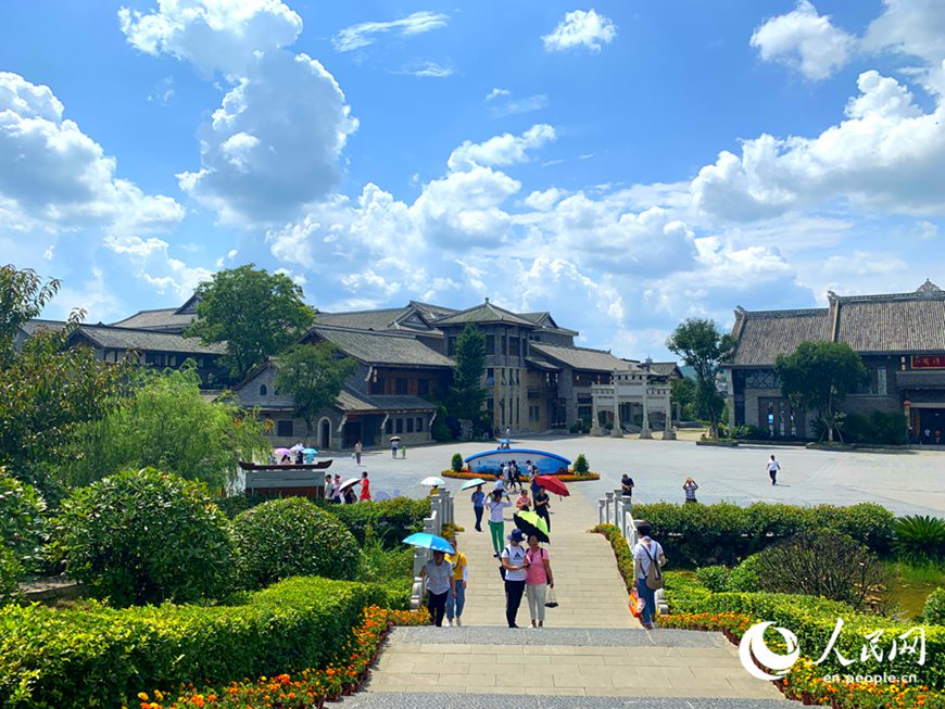 Tourists have fun at scenic spot in Nanlong Town, NW China