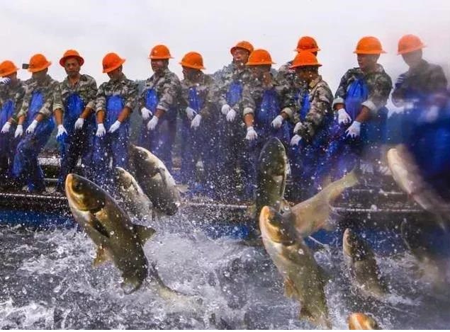 Along the Qiandao Lake of Chun'an, Zhejiang Province, fishermen drew a huge net together while they shouted. As the net became tighter, the surface of the water was no longer calm. After a while, tens of thousands of fish came out of the water.