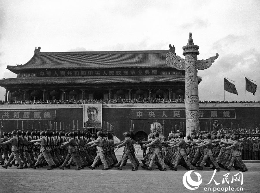 1949 Infantry pass Tiananmen Square in formation (Photo/Wu Qun)