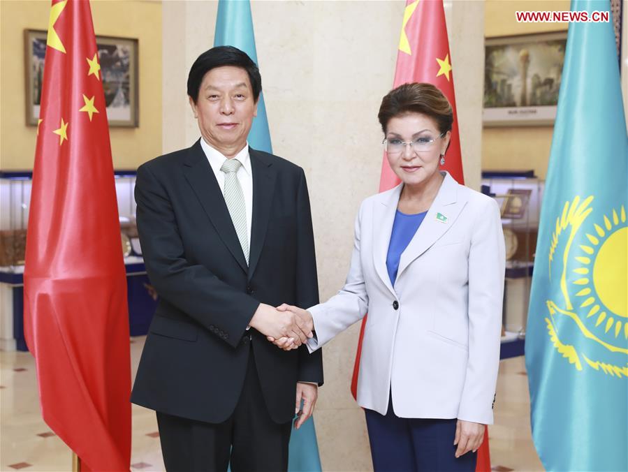 Li Zhanshu, chairman of the Standing Committee of the National People's Congress of China, holds talks with Dariga Nazarbayeva, speaker of the Kazakh parliament's upper house, in Kazakhstan, Sept. 23, 2019. Li paid an official goodwill visit to Kazakhstan from Sept. 21 to 25 at the invitation of Dariga Nazarbayeva, speaker of the Kazakh Parliament's Upper House, Nurlan Nigmatulin, speaker of the Kazakh Parliament's Lower House. (Xinhua/Pang Xinglei)