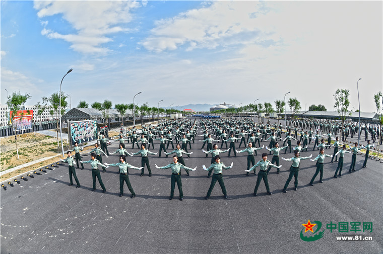 15:00 Female soldiers do body building exercises to warm up before the training in the afternoon. (Photo/www.81.cn)