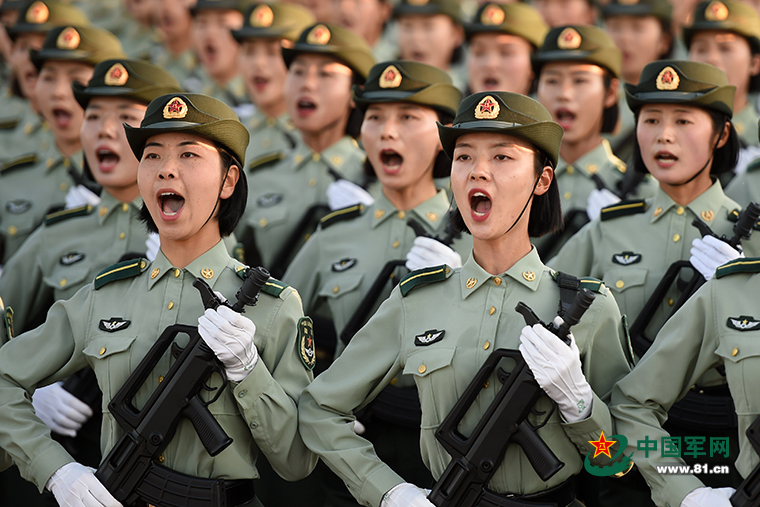 15:45 Female soldiers practice the transformation of steps from quick marching to goose-stepping. (Photo/www.81.cn)