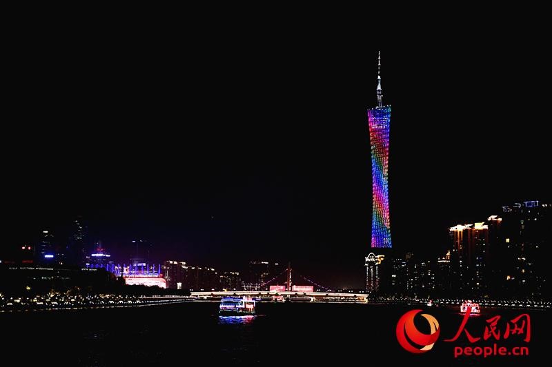 The colorful Canton Tower shines in the night sky. (Photo/Yu Kai)