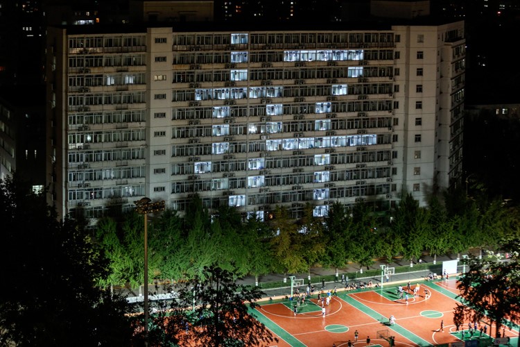 The building produces "Hello Beijing Institute of Technology" in the test phase before the actual light show