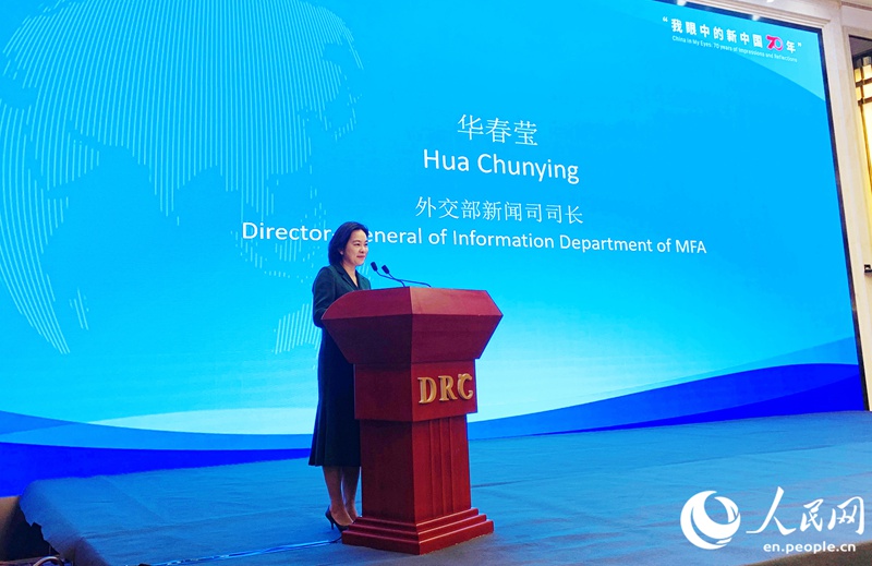 Hua Chunying, Director-General of Information Department of Ministry of Foreign Affairs, delivers a speech during the forum. (People’s Daily Online/Zhao Tong)