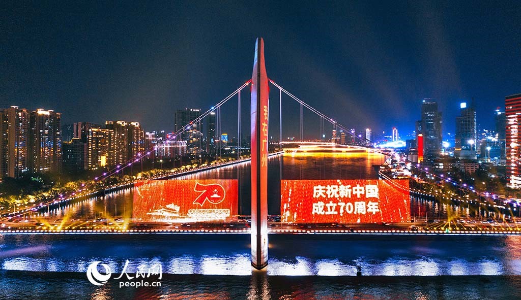 A night view of the Liede Bridge in the Haizhu District, Guangzhou (People's Daily Online/Qiu Huo)