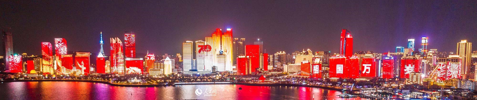 A light show of the Fushan Bay in Qingdao, Shandong province (People's Daily Online/Guan Shaozhuo)