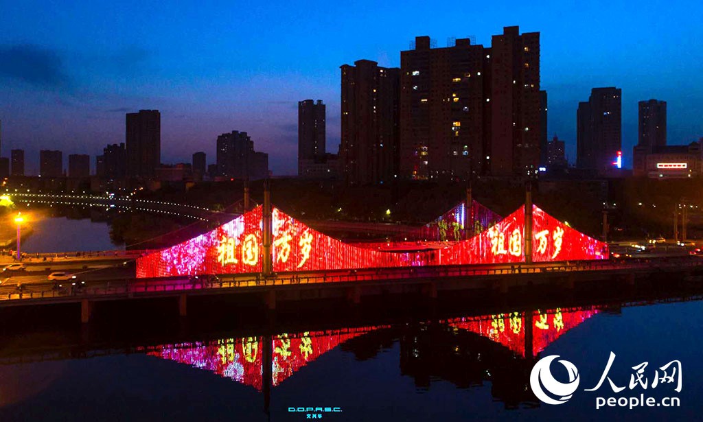 A light show along the Kongque River in Korla, Xinjiang Uygur Autonomous Region (People's Daily Online/Wen Xinghua)