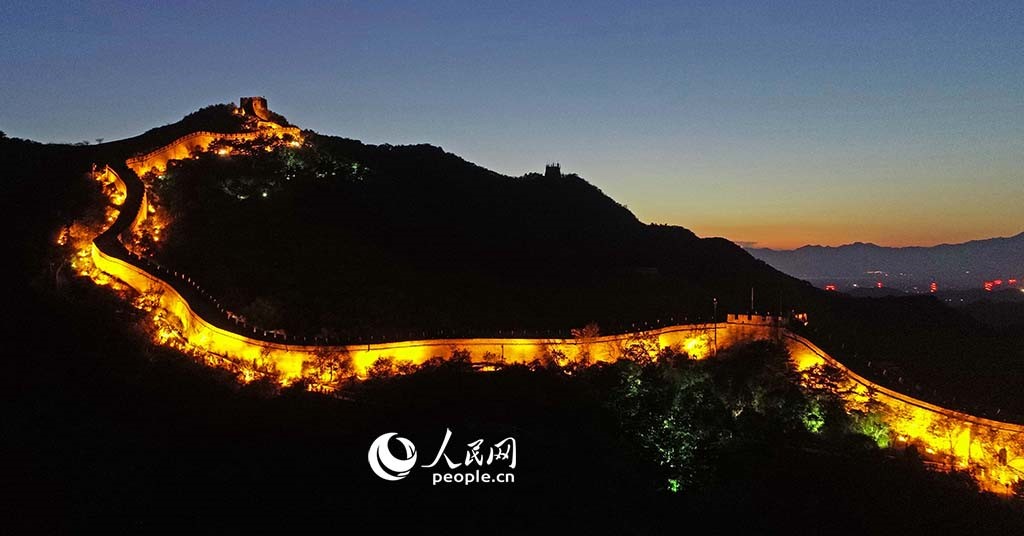 The Badaling section of the Great Wall in Beijing looks like a dragon when the lights are turned on. (People's Daily Online/Lei Sheng)