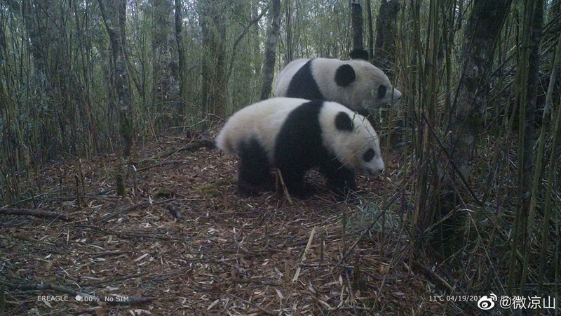 Many photos of wild giant pandas were recently found in the infrared cameras placed in the No.61 monitored section of the Dafengding National Nature Reserve, among which three photos depict the scenes of the two giant pandas ambling together, according to the information office of the People’s Government of Liangshan Yi Autonomous Prefecture.
