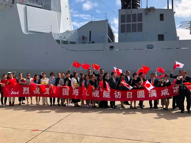 On the morning of Oct. 10, the guided-missile destroyer Taiyuan of the Chinese navy arrived in Yokosuka, Japan, where it was warmly welcomed by the Japanese maritime self-defense force, overseas Chinese, Chinese-funded institutions, overseas students and Japanese friends. This is the second visit of a Chinese naval vessel to Japan in the past 10 years, and it is the first time for the Chinese naval vessel to participate in the local naval parade.