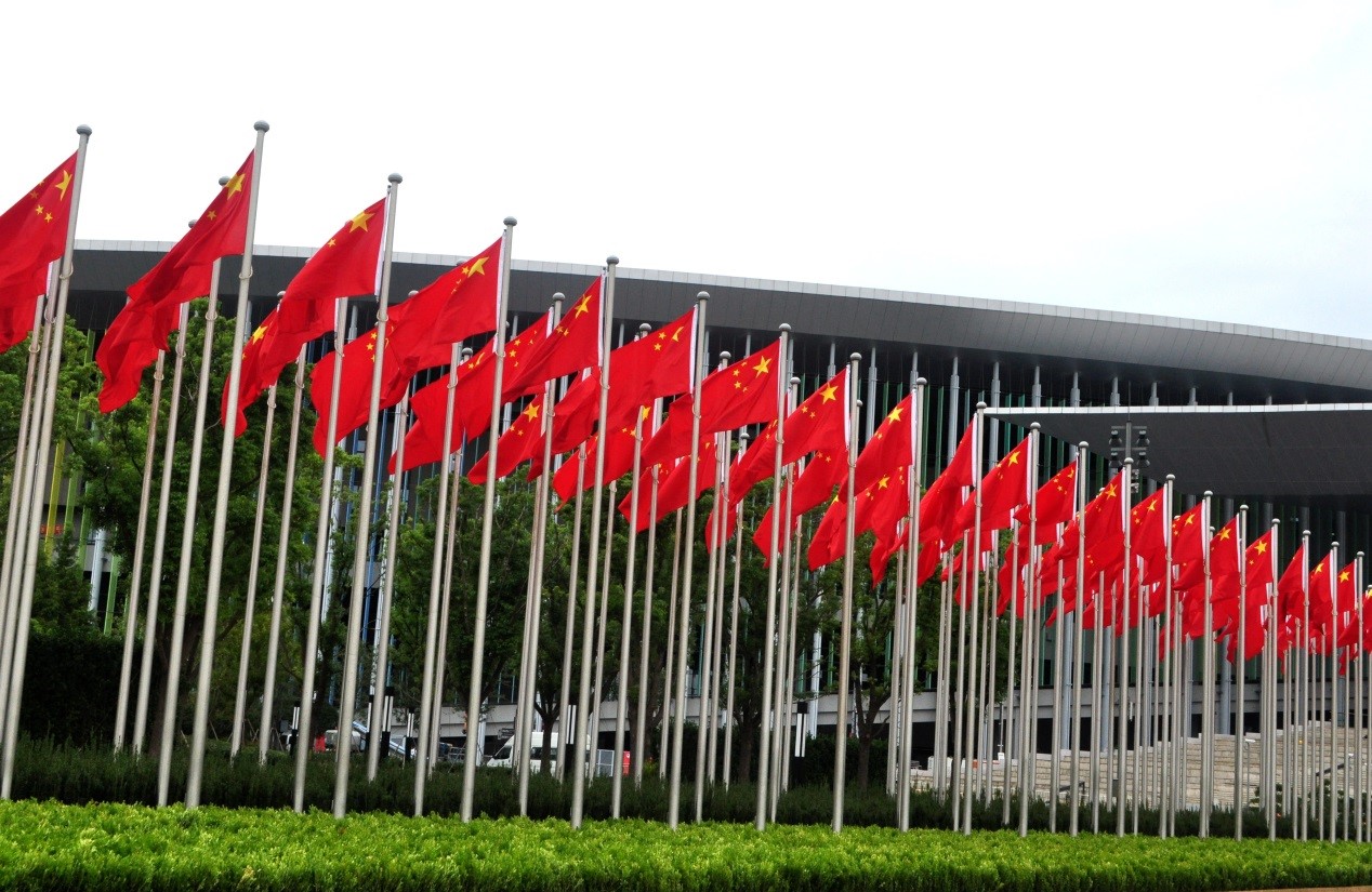 Chinese national flags wave in front of the newly-decorated venue of the second CIIE, Oct. 6, 2019. (Photo/Yan Daming, People’s Daily Online)