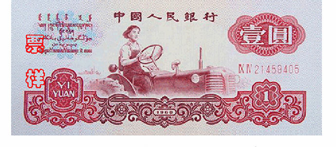 Moreover, as Jin became a representative of outstanding Chinese women, the image of her driving a tractor was printed on the one-yuan banknote of the 1960 edition of the Chinese renminbi.