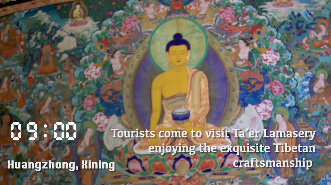 Tourists come to visit Ta’er Lamasery enjoying the exquisite Tibetan craftsmanship.