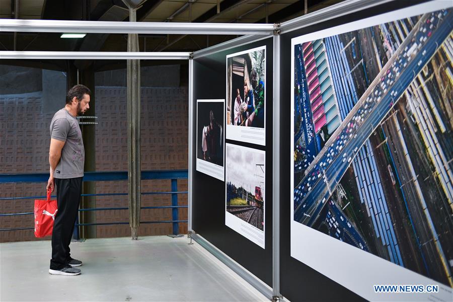 A visitor views photos during the third edition of the BRICS Media Joint Photo Exhibition in Sao Paulo, Brazil, Oct. 30, 2019. The third edition of the BRICS Media Joint Photo Exhibition opened on Wednesday here, with the presence of media representatives from the group's member countries -- Brazil, Russia, India, China, and South Africa. Dozens of photographs on display from 15 mainstream media organizations from the five countries showcased the economic and social development, scientific and technological progress, people-to-people exchange, natural beauty, and cooperation results of the BRICS countries. The exhibition, under the theme of "Shining BRICS, Shared Future," was jointly organized by China's Xinhua News Agency and Brazil's CMA Group. (Xinhua/Xin Yuewei)