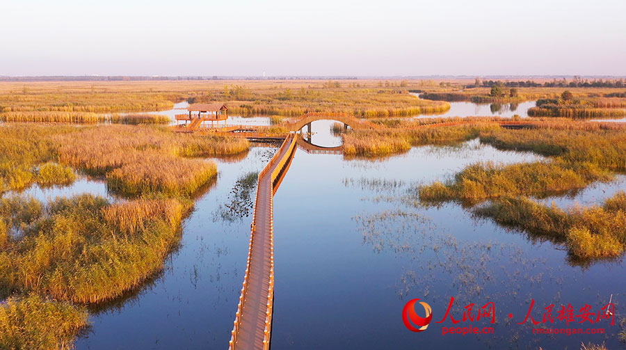 The corridor of Baiyangdian Lake is immersed in golden grasses in late autumn. (Photo/Li Zhaomin)