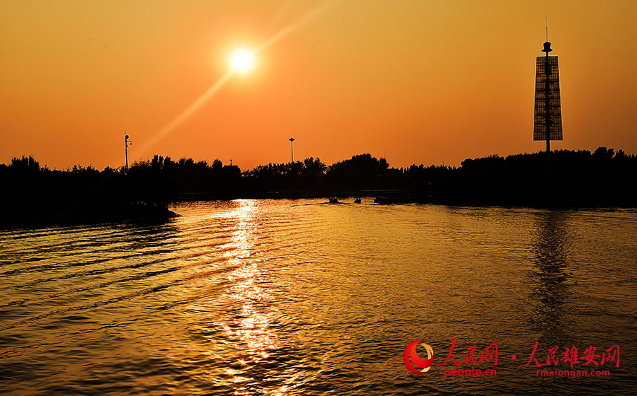 Baiyangdian Lake of Xiongan New Area looks gorgeous at sunset. (Photo/Liu Xiangyang)