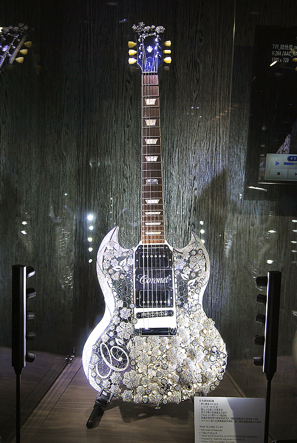 Meanwhile, the manufacturer also exhibited a diamond-embedded guitar. The guitar has 400 carats of diamonds, as well as 1.6 kilograms of 18K platinum. The price of the instrument is estimated at $2 million.