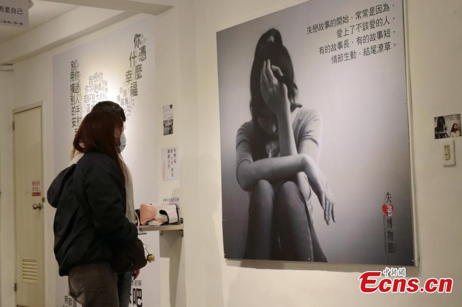 A museum dedicated to failed romance has opened in Hsinchu County of Taiwan island, showing photos, gifts and slogans about broken-hearted stories. (Photo: China News Service/Zhang Yuan)