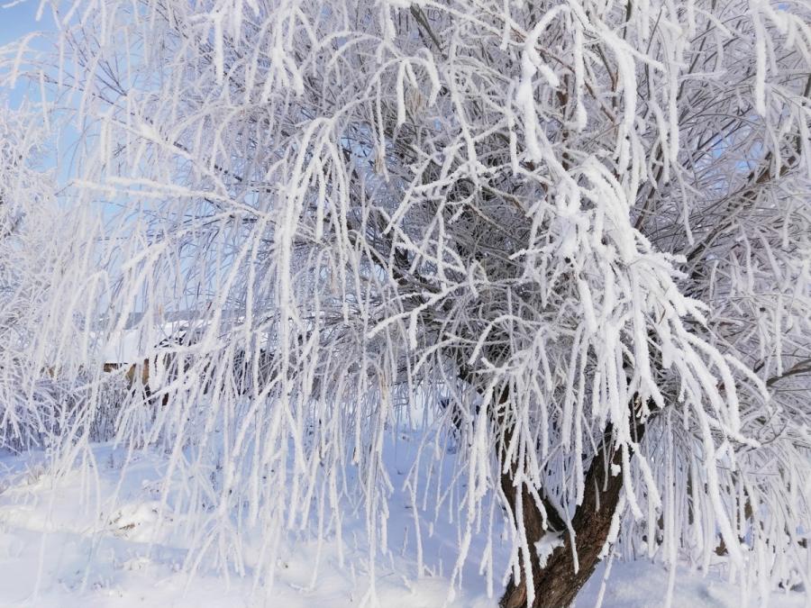 After the first snow in the early winter, the frozen rime on trees turned Jianbian Farm in Northeast China's Heilongjiang Province into a dreamy landscape. (Photo/chinadaily.com.cn)