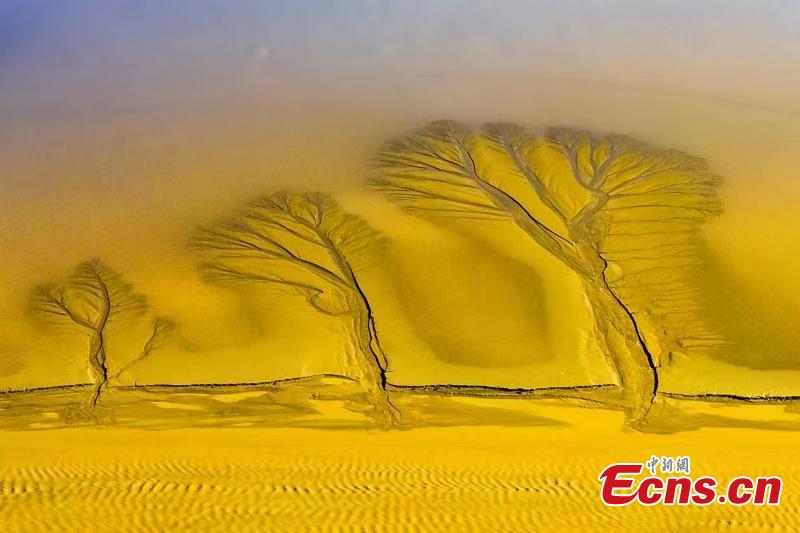 A view of vessel-like patterns left by tides on a mudflat in Tiaozini scenic area in Yancheng City, East China’s Jiangsu Province. (Photo: China News Service/Sun Jinhua)
