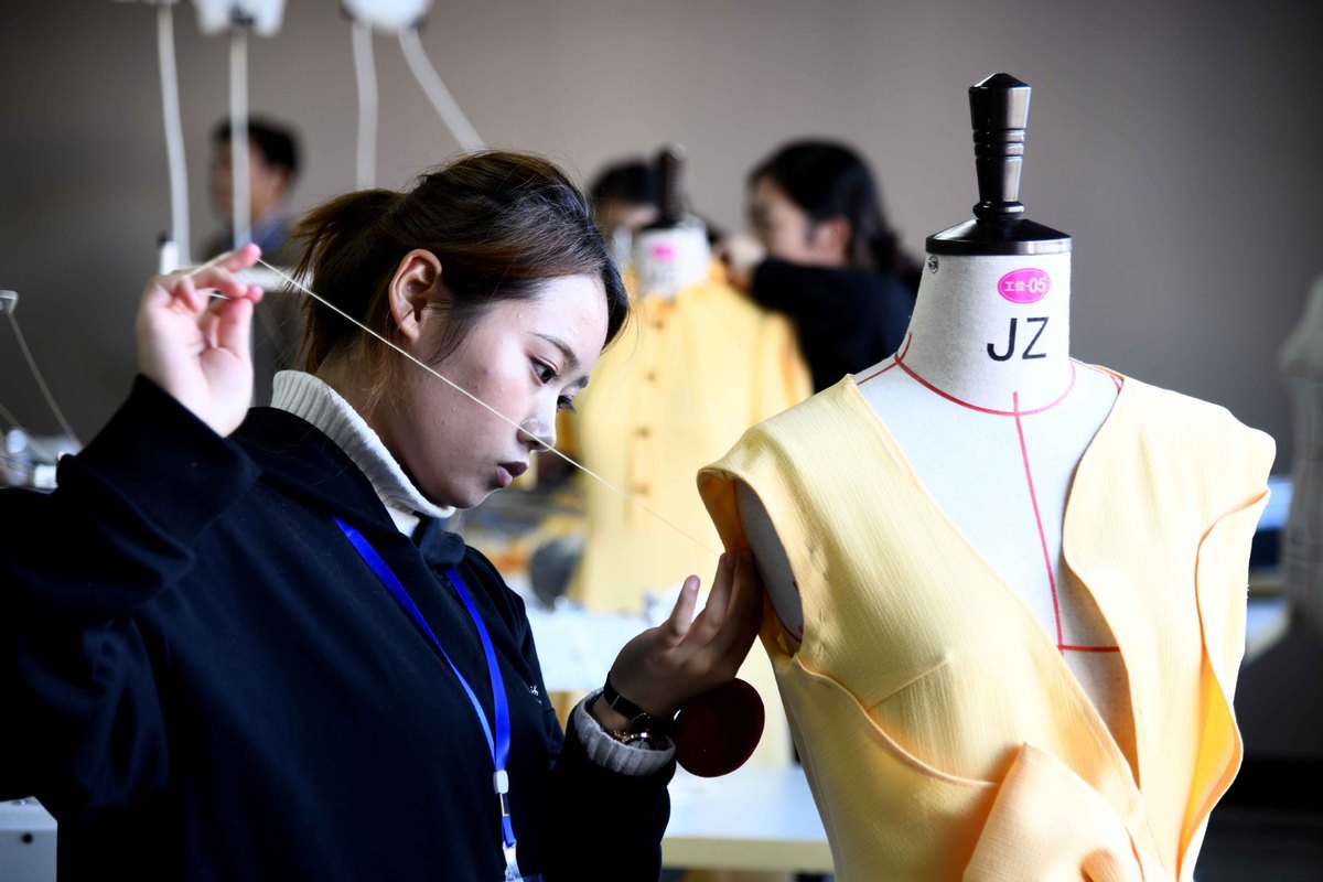 Participants compete in the fashion technology contest at Weihai Vocational College in Weihai city, East China's Shandong province, Nov 11, 2019. [Photo/Xinhua]