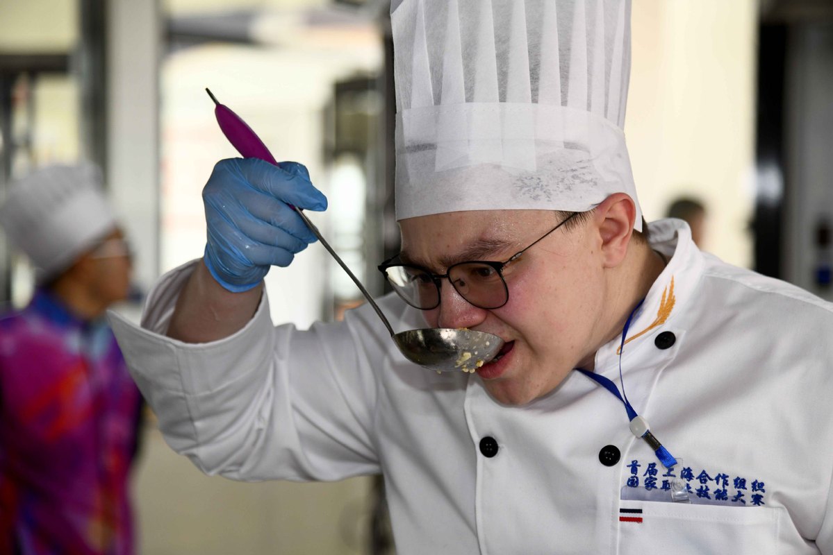 Participants compete in the European food cooking contest at Weihai Vocational College in Weihai city, East China's Shandong province, Nov 11, 2019. [Photo/Xinhua]