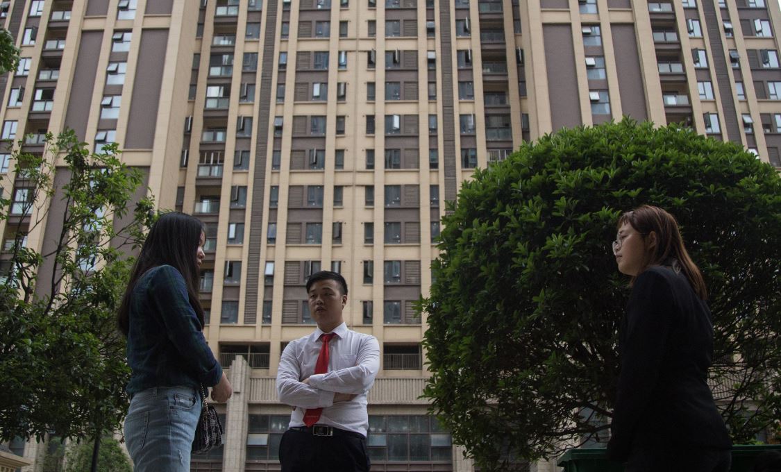 A real estate agent introduces a housing project to a potential homebuyer in Wuhan, Hubei province. [Photo provided to China Daily]