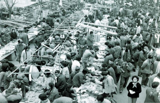 A photo taken in 1982 shows the first-generation marketplace for small commodities in Yiwu, in east China’s Zhejiang province Courtesy of the publicity department of Yiwu municipal government
