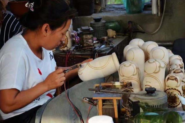 A woman who draws Russian dolls could earn about 3,000 yuan per month while a turner could earn up to 10,000 yuan. Acquiring the craftsmanship, villagers could make a living at home.