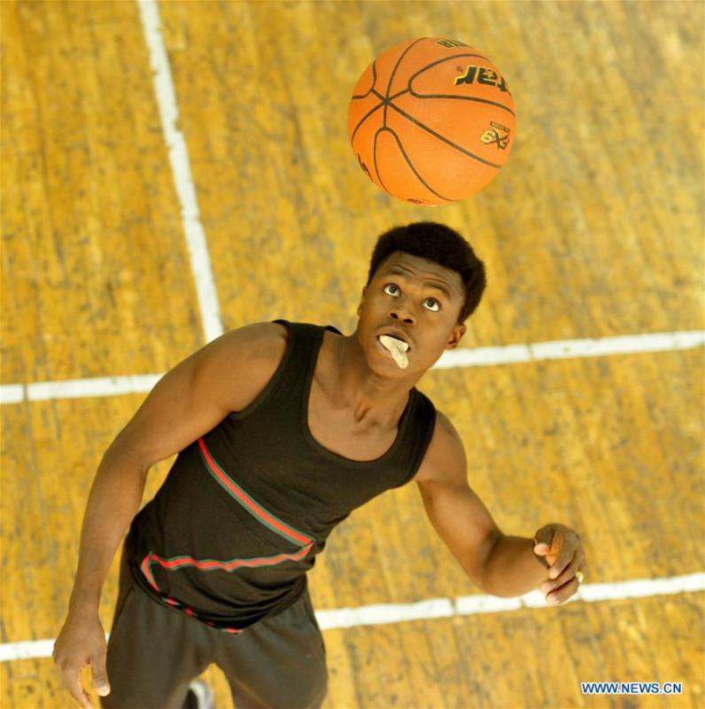 A student from Sierra Leone practises at Wuqiao Acrobatic Art School in Wuqiao County of Cangzhou, north China's Hebei Province, Nov. 18, 2019. Known as the "home of acrobatics" in China, Wuqiao County has become increasingly attractive to aspiring foreigners seeking an acrobatic career. (Xinhua/Zhu Xudong)