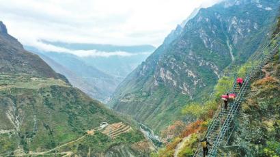 Atuleer village in Zhaojue county, Liangshan Yi autonomous prefecture of southwest China's Sichuan province is a genuine "cliff village", 800 meters above the ground. The only way to the outside world from the village is to climb down steel ladders.