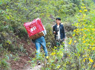 Residents of the Atuleer village, located on a cliff in Sichuan province, carry their parcels home up steel ladders - things they bought online during the recent November 11 shopping festival, Sichuan Daily reported.
