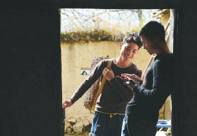 On his way home, Yang Yang meets a villager who is doing webcast. (Photo/Sichuan Daily)