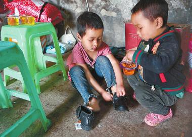 Yang Yang's daughter put on the new shoes. (Photo/Sichuan Daily)