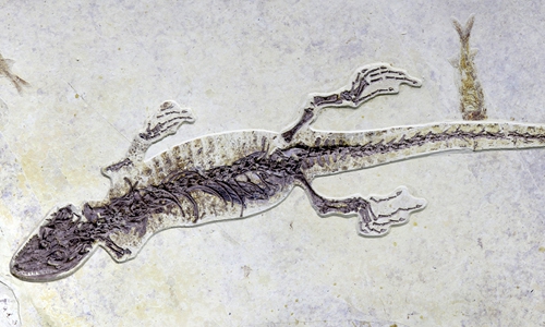 A lizard fossil contains crayfish remains in its stomach. Photo: Courtesy of Xing Lida
