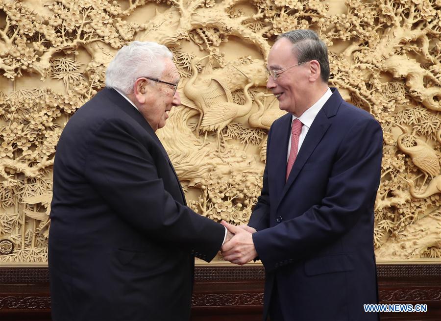 BEIJING, Nov. 23 (Xinhua) -- Chinese Vice President Wang Qishan Saturday met with former U.S. Secretary of State Henry Kissinger, calling on both countries to handle strategic issues in bilateral ties with a broader vision and a longer-term perspective.
