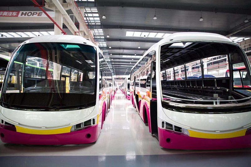 Guangxi Hope Automobile Co., Ltd. specializes in the R&D, manufacturing, and sales of new energy buses, with a total investment of 8 billion yuan. The first Hope bus rolled off the production line only nine months after construction started in April 2017.