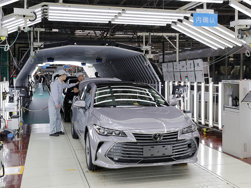 Technicians work on an automobile production line of Toyota in Tianjin. [Photo provided to China Daily]